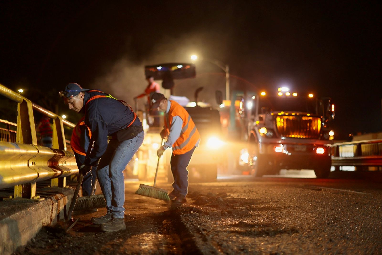 Anoche, Pereira se fue a dormir; con el justo cansancio de ser una ciudad trabajadora y entonces, ocurrió la “magia”, la cuadrilla de asfalto perteneciente a la Secretaría de Infraestructura se ocupó de darle una nueva ‘piel’ al puente de la carrera Novena con calle 10, trabajando intensamente durante toda la noche, incluso contra las inclemencias de una lluvia que parecía no estar dispuesta a ceder ante los obreros del municipio.